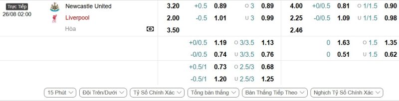 - Kèo tỷ số bóng đá hiệp 1: Newcastle United 2-1 Liverpool