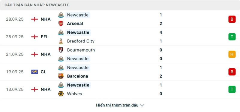 Newcastle United hiện đứng thứ 15 trên bảng xếp hạng với 6 điểm sau 6 vòng đấu. Họ chỉ thắng 1 trận, hòa 3 và thua 2, một thành tích khá thất vọng so với kỳ vọng đầu mùa. Một số kết quả nổi bật bao gồm chiến thắng sít sao trước Wolves và trận hòa không bàn thắng với Bournemouth. Tuy nhiên, họ cũng đã để thua Arsenal và Liverpool, đồng thời bị Barcelona vượt qua tại Champions League. Sự thất thường này khiến thầy trò Eddie Howe gặp nhiều áp lực, nhưng với lợi thế sân nhà, họ vẫn được kỳ vọng sẽ cải thiện tình hình.