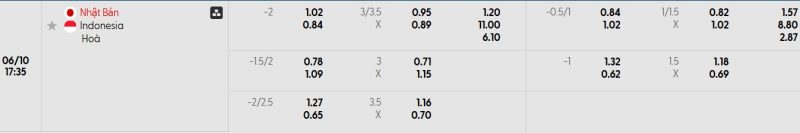 Bảng Tỷ lệ kèo bóng đá Nhật Bản vs Indonesia