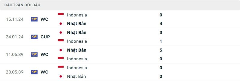 Thành tích đối đầu của Nhật Bản vs Indonesia