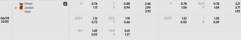 Bảng Tỷ lệ kèo bóng đá Oman vs Jordan