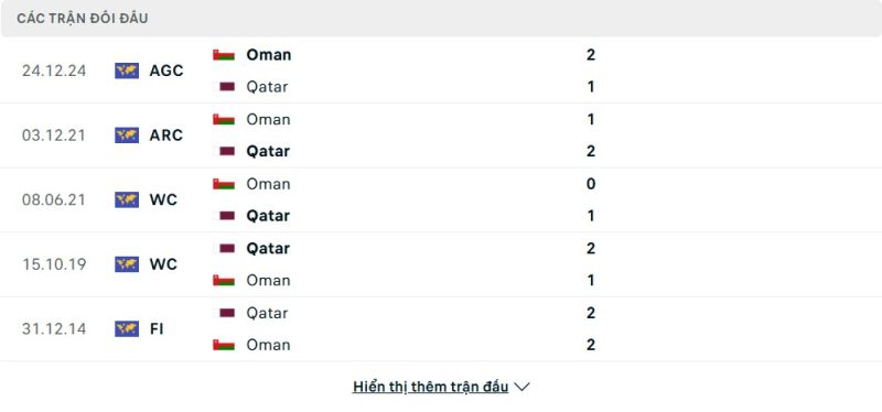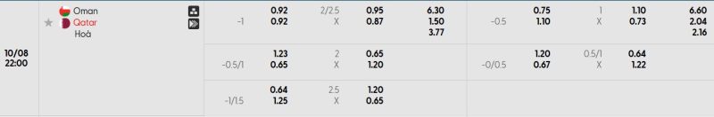 Bảng Tỷ lệ kèo bóng đá Oman vs Qatar