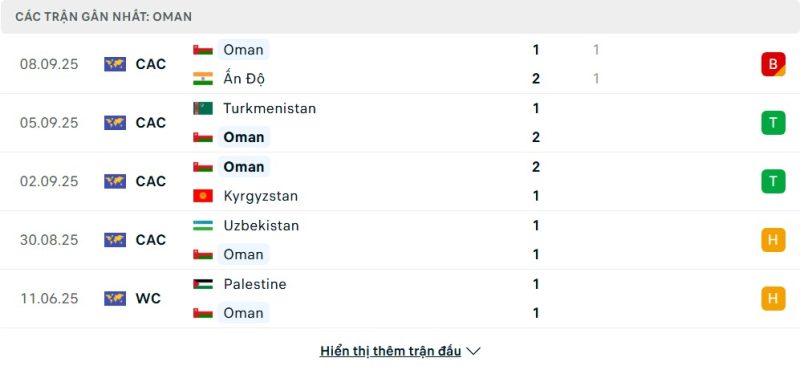 Oman đang thể hiện một phong độ tương đối ổn định trong thời gian gần đây. Hiện đang xếp hạng 77 trên bảng xếp hạng FIFA, đội bóng này đã cho thấy sự lì lợm khi giành những chiến thắng quan trọng trước Kuwait và Turkmenistan. Tuy nhiên, họ cũng gặp khó khăn trước các đối thủ mạnh hơn, thể hiện qua trận thua Jordan và bị Palestine cầm hòa. Nhìn chung, Oman là một tập thể có tổ chức tốt nhưng vẫn cần thêm sự đột biến để có thể tạo nên bất ngờ lớn.