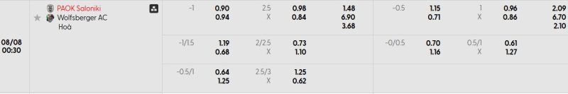 Bảng Tỷ lệ kèo bóng đá PAOK vs Wolfsberger AC