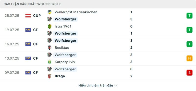 5 trận gần nhất của Wolfsberger AC: W-W-W-D-L