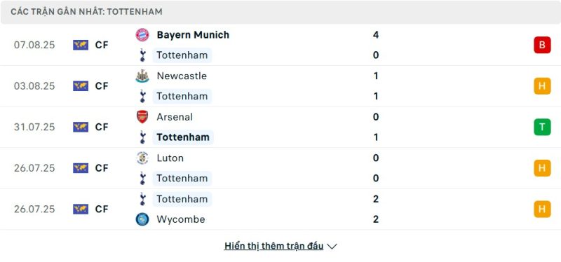 Thống kê phong độ gần đây Paris Saint-Germain vs Tottenham Hotspur