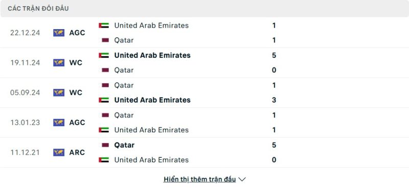 Bên kia chiến tuyến, UAE lại đang thể hiện một phong độ cực kỳ ấn tượng. Họ đang hiên ngang dẫn đầu bảng A với 3 điểm tuyệt đối sau chiến thắng 2-1 trước Oman. Chuỗi trận gần đây của họ cũng rất đáng nể với 4 chiến thắng liên tiếp, bao gồm cả những thắng lợi quan trọng trước Bahrain và Syria. Lối chơi của UAE đang cho thấy sự hiệu quả và gắn kết cao. Với sự tự tin đang lên, UAE chắc chắn sẽ hành quân đến sân của Qatar với mục tiêu không gì khác ngoài việc củng cố vững chắc ngôi đầu bảng.