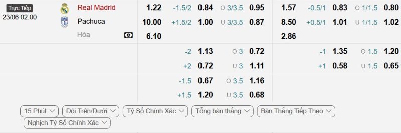 Bảng Tỷ lệ kèo bóng đá Real Madrid vs CF Pachuca