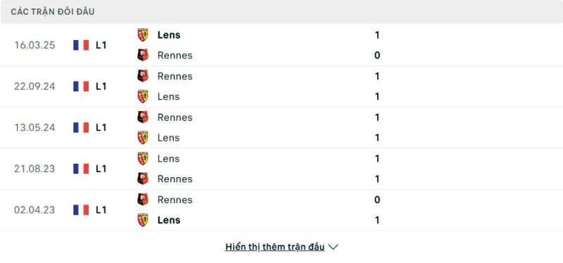 Bảng Tỷ lệ kèo bóng đá Rennes vs Lens