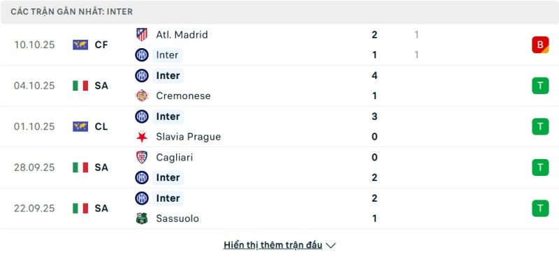 Inter Milan cũng chứng tỏ mình là một ứng cử viên nặng ký cho danh hiệu vô địch. Dù đang xếp thứ tư với 12 điểm, kém Roma 3 điểm, nhưng sức mạnh tấn công của họ là không thể bàn cãi. Nerazzurri hiện là đội bóng sở hữu hàng công mạnh nhất giải đấu với 17 lần xuyên thủng mành lưới đối phương. Chuỗi phong độ gần đây của Inter cũng rất ấn tượng với những chiến thắng đậm đà trước Cremonese 4-1 hay những màn trình diễn thuyết phục tại Champions League trước Slavia Praha và Ajax.