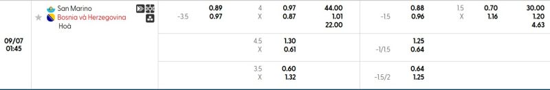Bảng Tỷ lệ kèo bóng đá San Marino vs Bosnia & Herzegovina