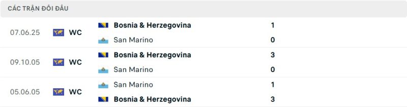 Thành tích đối đầu của San Marino vs Bosnia & Herzegovina