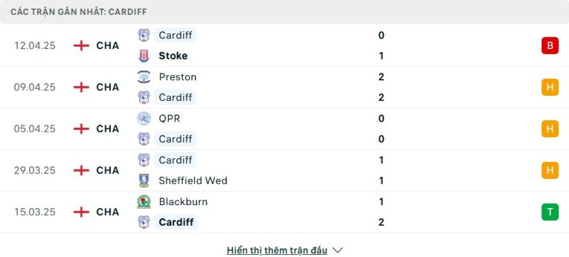 Thống kê phong độ gần đây Sheffield United vs Cardiff City