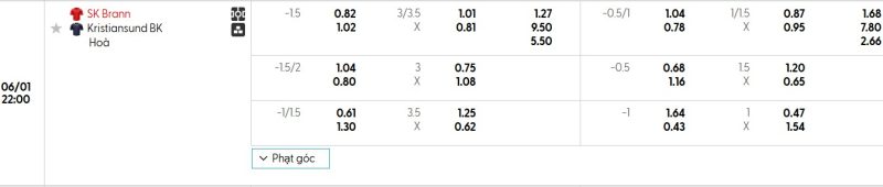 - Kèo châu Á Full Time: Kristiansund BK +1.5