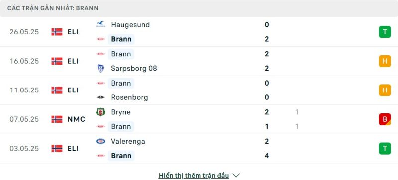 5 trận gần nhất của SK Brann: W-D-D-D-W