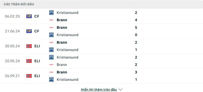 Thành tích đối đầu của SK Brann vs Kristiansund BK