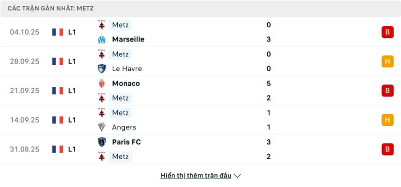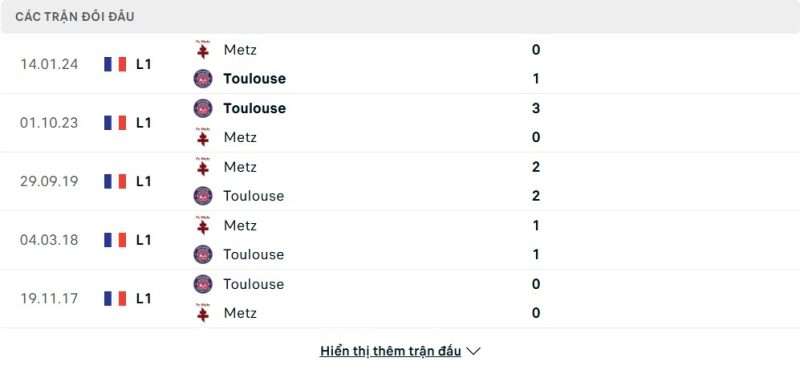 Toulouse đứng ở vị trí thứ 9 trên bảng xếp hạng với 10 điểm sau 7 vòng đấu, thể hiện phong độ khá thất thường trong giai đoạn đầu mùa. Đội bóng này từng có chuỗi khởi đầu ấn tượng với ba chiến thắng trước Nice, Brest và Lyon, nhưng nhanh chóng sa sút với ba thất bại liên tiếp trước PSG, Lille và Auxerre. Trận hòa 2-2 với Nantes gần đây cho thấy Toulouse vẫn chưa tìm lại được sự ổn định cần thiết. Dù vậy, khả năng thi đấu trên sân nhà của họ vẫn là điểm tựa quan trọng, đặc biệt trước những đối thủ đang ở nhóm cuối bảng như Metz.
