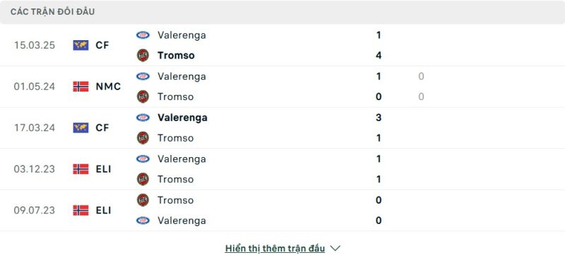 Bảng Tỷ lệ kèo bóng đá Tromsø IL vs Vålerenga IF