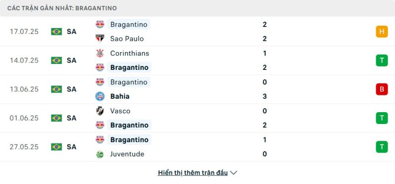 Bên kia chiến tuyến, Red Bull Bragantino đang có phong độ tương đối ổn định. Họ bất bại 4/5 trận gần nhất tại Serie A, trong đó có các chiến thắng trước Corinthians, Vasco và Juventude. Trận gần nhất, Bragantino cầm hòa Sao Paulo 2-2, cho thấy bản lĩnh thi đấu ngày càng được cải thiện. Đội khách hiện nằm trong nhóm dẫn đầu bảng xếp hạng và đang nuôi tham vọng cạnh tranh ngôi vô địch. Điều này giúp họ bước vào trận đấu với tâm thế hoàn toàn chủ động.