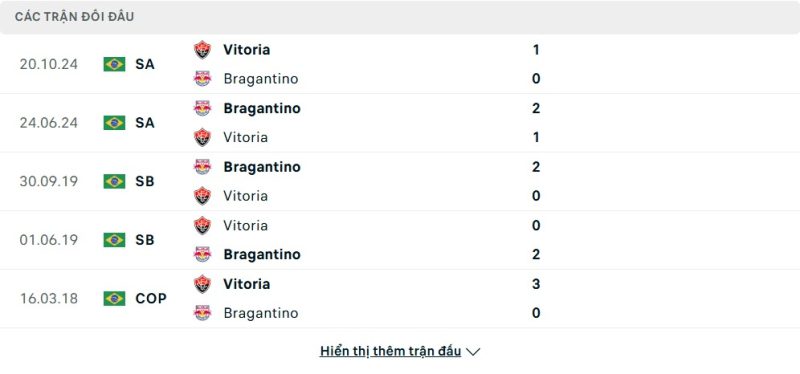 Thành tích đối đầu của Vitória vs Red Bull Bragantino
