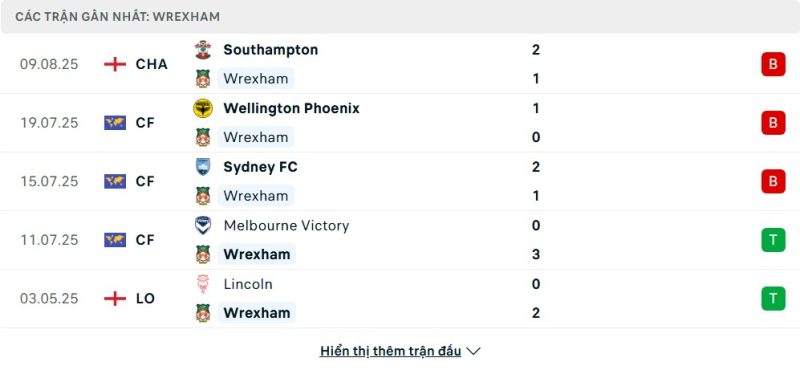 Wrexham khép lại League One mùa trước bằng chuỗi trận khá ấn tượng, thắng liên tiếp Blackpool 2-1, Charlton 3-0 và Lincoln 2-0. Bước vào loạt giao hữu hè, họ khởi đầu suôn sẻ với chiến thắng 3-0 trước Melbourne Victory, nhưng ngay sau đó nhận liền hai thất bại trước Sydney FC và Wellington. Tại Championship, trận mở màn của Wrexham là chuyến làm khách trên sân Southampton, nơi họ chơi không tệ nhưng vẫn thua 1-2. Phong độ gần đây cho thấy Wrexham cần thêm sự ổn định nếu muốn có điểm trước đối thủ mạnh.